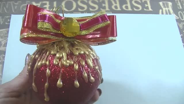 Елочная игрушка . Декор шара горячим клеем.
