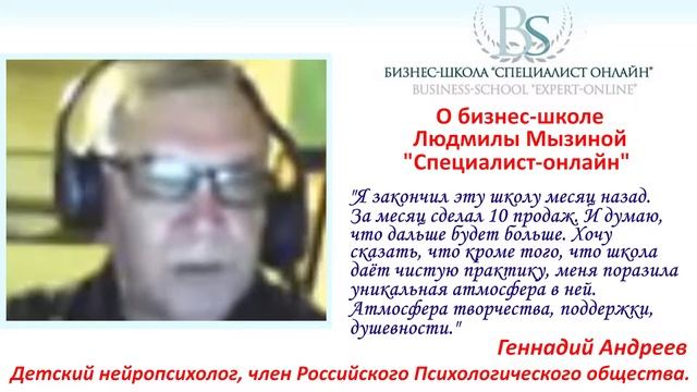 Мнение о бизнес-школе Л.Мызиной "СПЕЦИАЛИСТ ОНЛАЙН" выпускника Геннадия Андреева