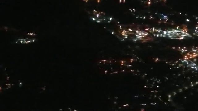 Вид с окна самолета ночью при приземлении