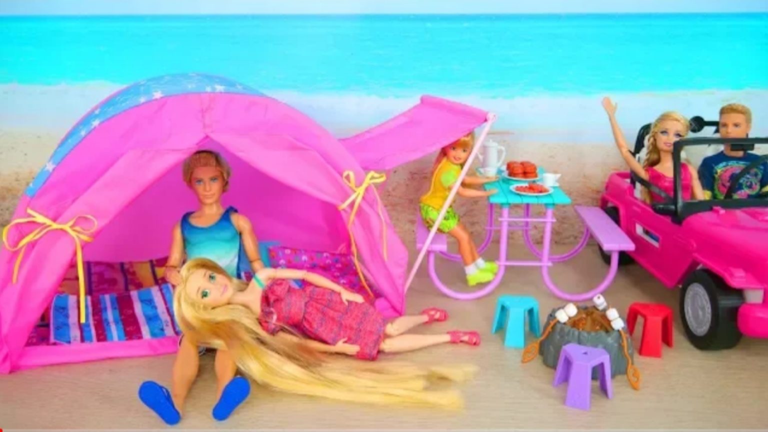 Кемпинг палатка и пляж для кукол с автомобилями