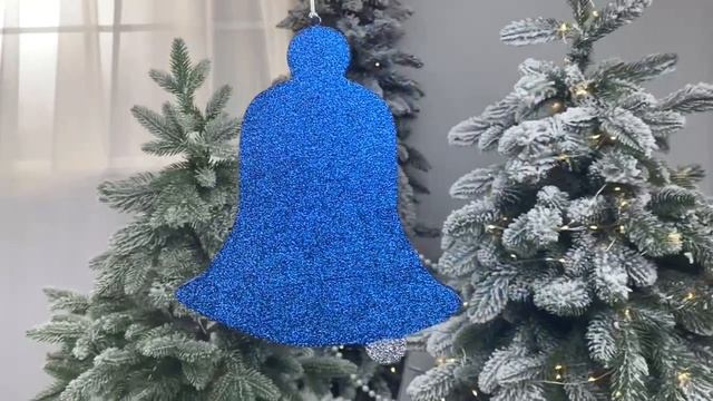 Елочное украшение КОЛОКОЛЬЧИК двухцветный с блестками, синий, пеноплекс, 25 см, Кол2-250-син