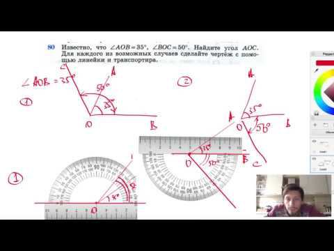 №80. Известно, что ∠AOB = 35°, ∠BOC = 50°. Найдите угол АОС. Для каждого из возможных случаев сделайте чертеж с помощью линейки и транспортира. Поддержать канал рублём - 5469400944002125 (Сбербанк) Мой второй канал для подготовки к ЕГЭ и ОГЭ - https://www.youtube.com/ЕвгенийСумин Инстаграм - https://www.instagram.com/EGE_OGE.math Личный инстаграм - https://www.instagram.com/ee_sumin VK - https://vk.com/evgeniysumin FB - https://www.facebook.com/EvgeniySumin