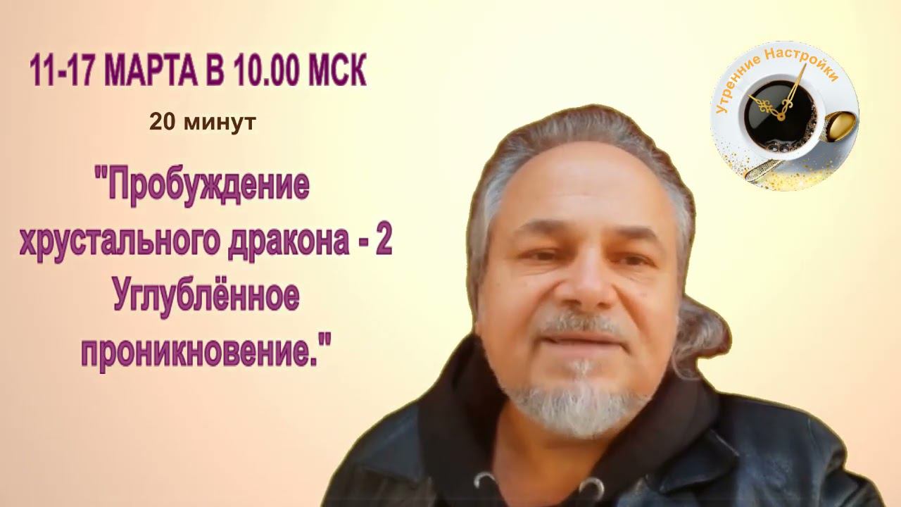 Забронировать место на неделю 11-17.03 "Пробуждение хрустального дракона - 2. Углубленное проникновение." с Поникаревым В.В. https://clck.ru/39GvQu Вторая неделя утренних настроек на осознанное, активное, полюбовное взаимопроникновение с миром, и сотворение пути кайфовой жизни. «УТРЕННИЕ НАСТРОЙКИ» – это идеальный способ ввести в свой каждый день невероятно полезные навыки с эффектом как по «волшебству» Подписывайтесь на наши каналы в Телеграмм: Проект «УТРЕННИЕ НАСТРОЙКИ», узнать о следующих темах https://t.me/moning_deir анонсы онлайн мероприятий - канал "Апгрейдинг Сознания" https://t.me/upgradingsense Мы в соцсетях https://deir-online.ru/contacts