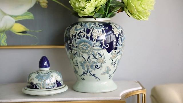 Изящная фарфоровая ваза с крышкой создана чтобы восхищать. Великолепная роспись сине-голубым узором на белой глянцевой поверхности притягивает взгляд и удивляет искусной работой мастера. Вы можете использовать ее в качестве декора или как вазу для цветов.