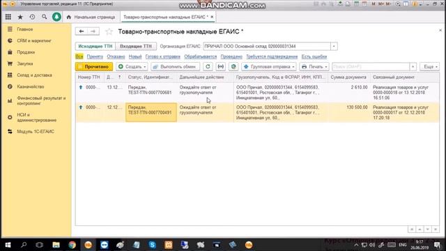 ЕГАИС Подготовка и отправка исходящих ТТН