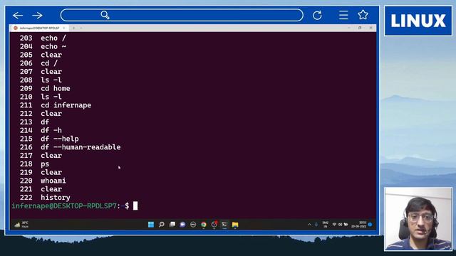 Linux commands tutorial - df, ps, whoami, history, exit, sudo, mkdir, cd