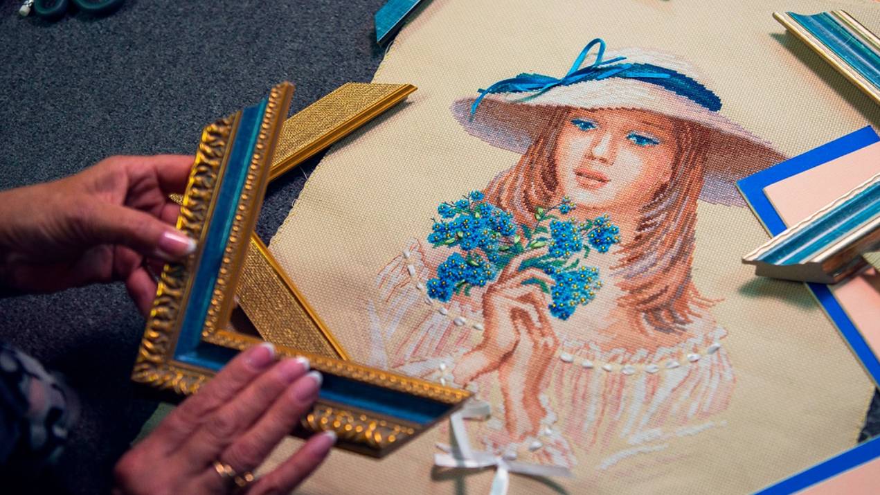 Вышивка крестом "Незабудки" - подбираю оформление в багет