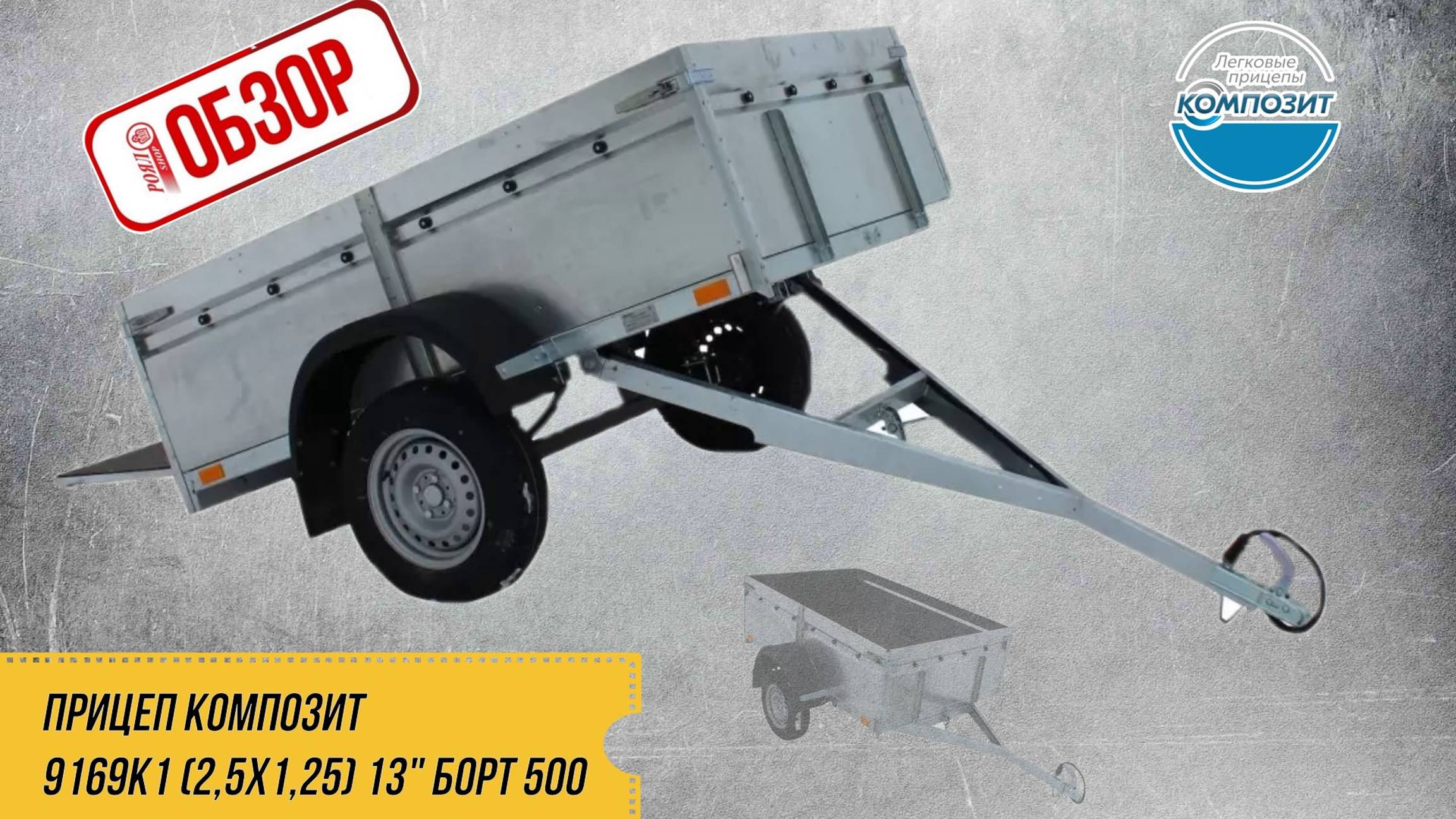 ОБЗОР РОЯЛ-АВТО: ПРИЦЕП КОМПОЗИТ 9169K1 (2,5х1,25) 13" борт 500