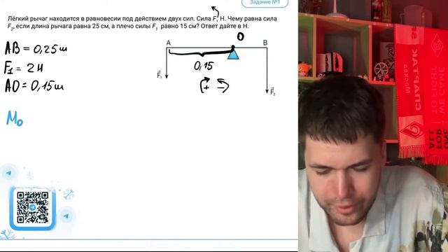 Лёгкий рычаг находится в равновесии под действием двух сил. Сила F1 Н. Чему равна сила - №20870