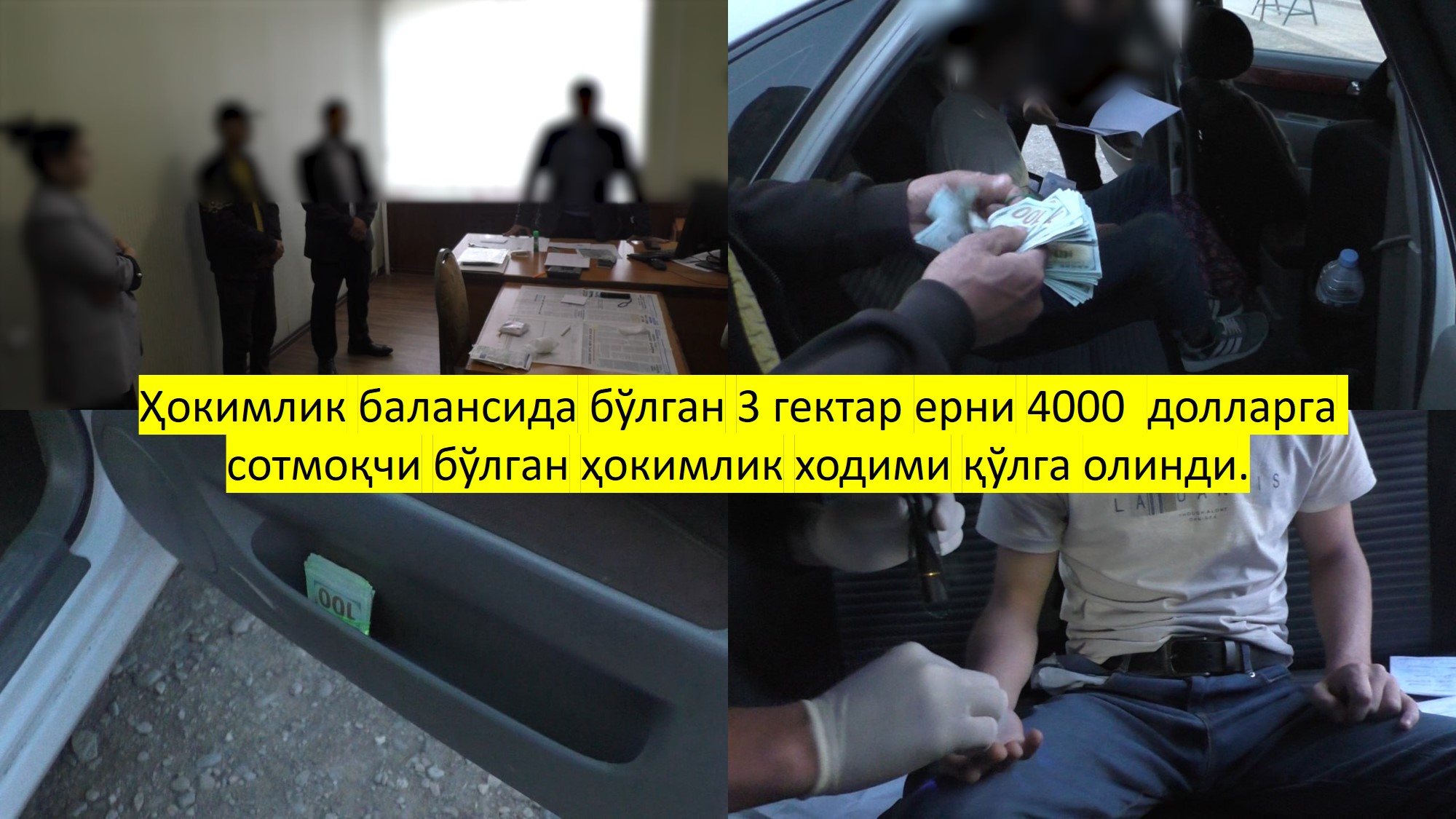 Ҳокимлик балансида бўлган 3 гектар ерни 4000 долларга сотмоқчи бўлган ҳокимлик ходими қўлга олинди.
