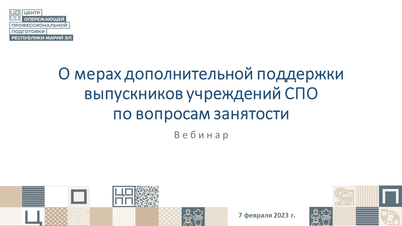 Вебинар "О мерах дополнительной поддержки выпускников учреждений СПО по вопросам занятости"_07.02.23