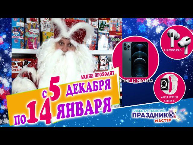 РОЖДЕСТВЕНСКИЙ РОЗЫГРЫШ ОТ КОМПАНИИ "ПРАЗДНИК МАСТЕР" ⠀ ВЫИГРАЙ: ⠀ Apple iPhone 12 Pro Max Смарт-часы Apple Watch Series 6 Наушники Apple AirPods Pro и другие призы ⠀ За покупку любой пиротехники в магазинах «Праздник мастер» @prazdnikmaster и интернет-магазине https://prazdnikmaster.ru ⠀ За каждую 1000 рублей вы получите 1 купон! Цены на пиротехнику самые низкие в городе ) Адреса магазинов: г. Краснодар, ул. Васнецова 39/1 тел. +7(918) 128 08 78 г. Краснодар, ул. Генерала Трошева 1/12 тел. +7(989) 295-59-23 ⠀ Смотри в публикации "РЕГИСТРИРУЙ КУПОНЫ" условия и участвуй в МЕГА-розыгрыше ⠀ Акция действует с 5 декабря 2020 по 14 января 2021 ⠀ Розыгрыш состоится 15 января в прямом эфире. Победителя выберем случайным образом аккаунте @prazdnikmaster Подписывайтесь на канал ! https://www.youtube.com/channel/UCNZjl3bmZJWoqpFIGLnDvlQ?sub_confirmation=1 ------------------------------------------------------------------ ☞ ПОДПИСЫВАЙСЯ НА ПраздникМастер! Мы instagram https://www.instagram.com/prazdnikmaster/ Мы Вконтакте https://vk.com/pmonline Мы Facebook https://www.facebook.com/prazdnikmasterkrd ! Активность канала зависит от лайков и комментариев! Так что если хочешь нам помочь – ты знаешь, что делать.