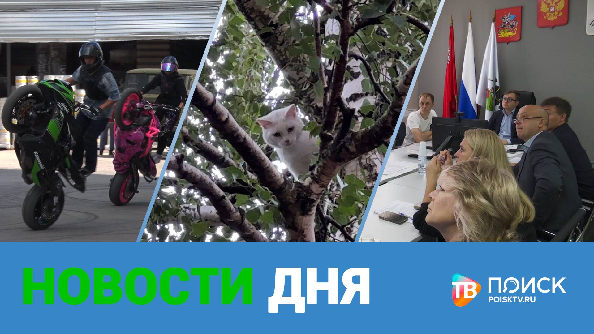 Готовимся к новому году. Учебному. Подготовку образовательных учреждений обсудили на плановом совещании губернатора Московской области Андрея Воробьева с членами Правительства и главами округов. С небес - на землю. Специалисты "Клинспаса" спустили с дерева кошку. Животное провело на березе несколько дней. Будем здоровы. В Клину работала передвижная лаборатория научно-исследовательского клинического института детства Минздрава Московской области. Узкие специалисты обследовали больше ста детей. "Брэйнсторм мото фест". Вот уже второй год подряд на территории пивоварни "Глэтчер" проходит фестиваль для любителей скорости и адреналина.