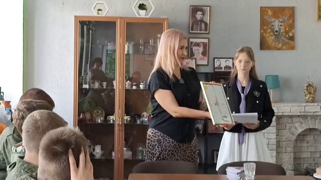 Час мужества "Время правды" Нашу гимназию посетила Бобрикова Лариса Владимировна - заместитель руководителя по социально-психологической помощи Комитета семей воинов Отечества, член общественной организации «Жена и Мать Героя Крыма», мама погибшего воина - ефрейтора Краснобаева Александра Алексеевича, который погиб 24 августа 2022 года при выполнении служебно-боевой задачи на Каховском мосту. Александр Алексеевич был награждён орденом за Верность Долгу и орденом Мужества посмертно. Лариса Владимировна встретилась с юнармейцами из девятого класса и передала в экспозицию музея Боевой славы нашей гимназии личные вещи солдат СВО. Встреча прошла в душевной обстановке, Лариса Владимировна говорила о патриотизме, рассказывала жизненные истории солдат СВО. Ученики гимназии передали солдатам письма с пожеланиями скорейшего выздоровления, а руководитель музея Ильясова Гульнара Наримановна подарила Ларисе Владимировне книгу «Помним! Гордимся!», которую в прошлом учебном году издали наши музееведы.