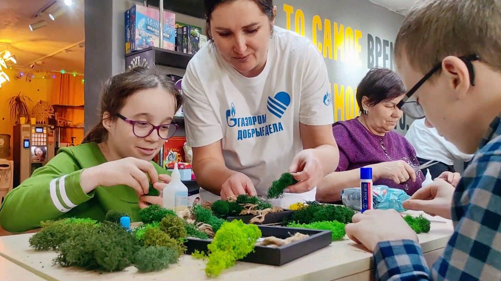 По-настоящему весенние работы выполнили дети и родители Свободненского общества семей с детьми инвалидами «Мы вместе» вместе с наставниками-волонтёрами из числа сотрудников Амурского ГПЗ. Своими руками ребята и родители создали экологичные зеленые панно из мха, которые украсят их домашний интерьер. Необычный материал и оригинальная техника изготовления работ вызвали неподдельный интерес у всех участников – настенные панно выполняли целыми семьями. Кстати, стабилизированный мох выбрали для рукоделия не случайно, а по рекомендации специалистов – новые тактильные ощущения при работе с природными материалами помогают детям с ограничениями здоровья познавать окружающий мир и развивать моторику. Автором идеи проведения такого мастер-класса стала Инна Сидорова – руководитель одного из городских общественных пространств «Наше место». Предприниматель безвозмездно предоставила площадку для проведения мероприятия. Волонтеры-газопереработчики продолжат работать с детьми с ОВЗ, подобные мастер-классы пройдут в Свободном 22 февраля и 2 марта. #АмурскийГПЗ #НКО2025ОПАмур