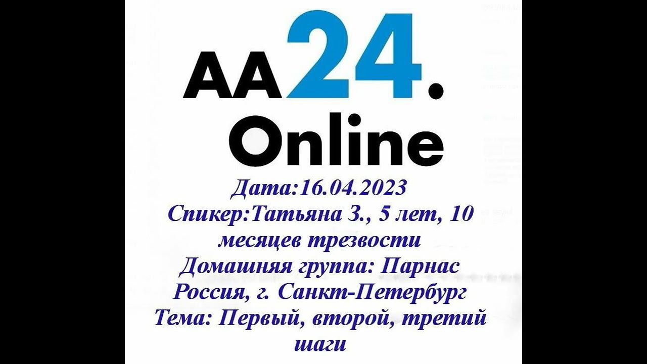 16.04.2023 Татьяна З., 5 лет, 10 мес трезвости Россия, СПБ ПарнасТЕМА: Первый, второй, третий шаги