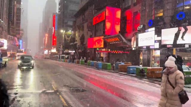 Virtual Winter Snow Walk New York Morning Walking Tour Manhattan Times Square 2024