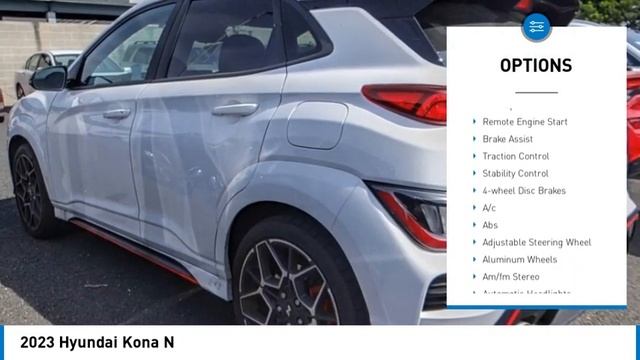 CERRITOS, ARTESIA, LAKEWOOD, BELLFLOWER, BUNEA PARK, LONG BEACH 2023 Hyundai Kona N https://www.normreeveshyundai.com For more information on this vehicle and our full inventory, call us at 562-345-1333 Norm Reeves Hyundai Superstore 10901 183rd St Cerritos CA 90703 NORM REEVES HYUNDAI SUPERSTORE PROUDLY SERVING ORANGE COUNTY, CERRITOS, ARTESIA, LAKEWOOD, BELLFLOWER, BUENA PARK, LONG BEACH, AND SURROUNDING SOUTHERN CALIFORNIA LOCATIONS. THIS LUNAR WHITE 2023 Hyundai KONA N IS EQUIPPED WITH A Engine: 2.0L Turbo-GDI DOHC 16-Valve I4, AUTOMATIC TRANSMISSION, AND RECEIVES AN ESTIMATED 20 City/27 Hwy MPG. CONTACT NORM REEVES HYUNDAI SUPERSTORE AT 888-262-3167 FOR MORE INFORMATION ON THIS 2023 Hyundai KONA N. OR VISIT US AT 11011 EAST SOUTH ST. CERRITOS, CA 90703 2023 Hyundai KONA N ***HYUNDAI CERTIFIED PRE-OWNED*** Certified. Lunar White 2023 Hyundai Kona N FWD 8-Speed Automatic 2.0L I4 DGI DOHC 16V Turbocharged Recent Arrival! 20/27 City/Highway MPG Hyundai Certified Pre-Owned Details: * Includes 10-year/Unlimited mileage Roadside Assistance with Rental Car and Trip Interruption Reimbursement; Please see dealers for specific vehicle eligibility requirements. 10-Year/100,000 Mile Hybrid/EV Battery Warranty. 3 months Siru-iusXM trial subscription * Warranty Deductible: $50 * 173+ Point Inspection * Limited Warranty: 60 Month/60,000 Mile (whichever comes first) from original in-service date * Roadside Assistance * Vehicle History * Powertrain Limited Warranty: 120 Month/100,000 Mile (whichever comes first) from original in-service date Stock #: PU007457L | VIN: KM8KH3AC9PU007457 | 2023 Hyundai Kona N HEATED MIRRORS SATELLITE RADIO SECURITY SYSTEM Norm Reeves Hyundai Superstore