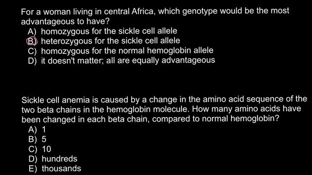 Sickle cell anemia - multiple choice questions