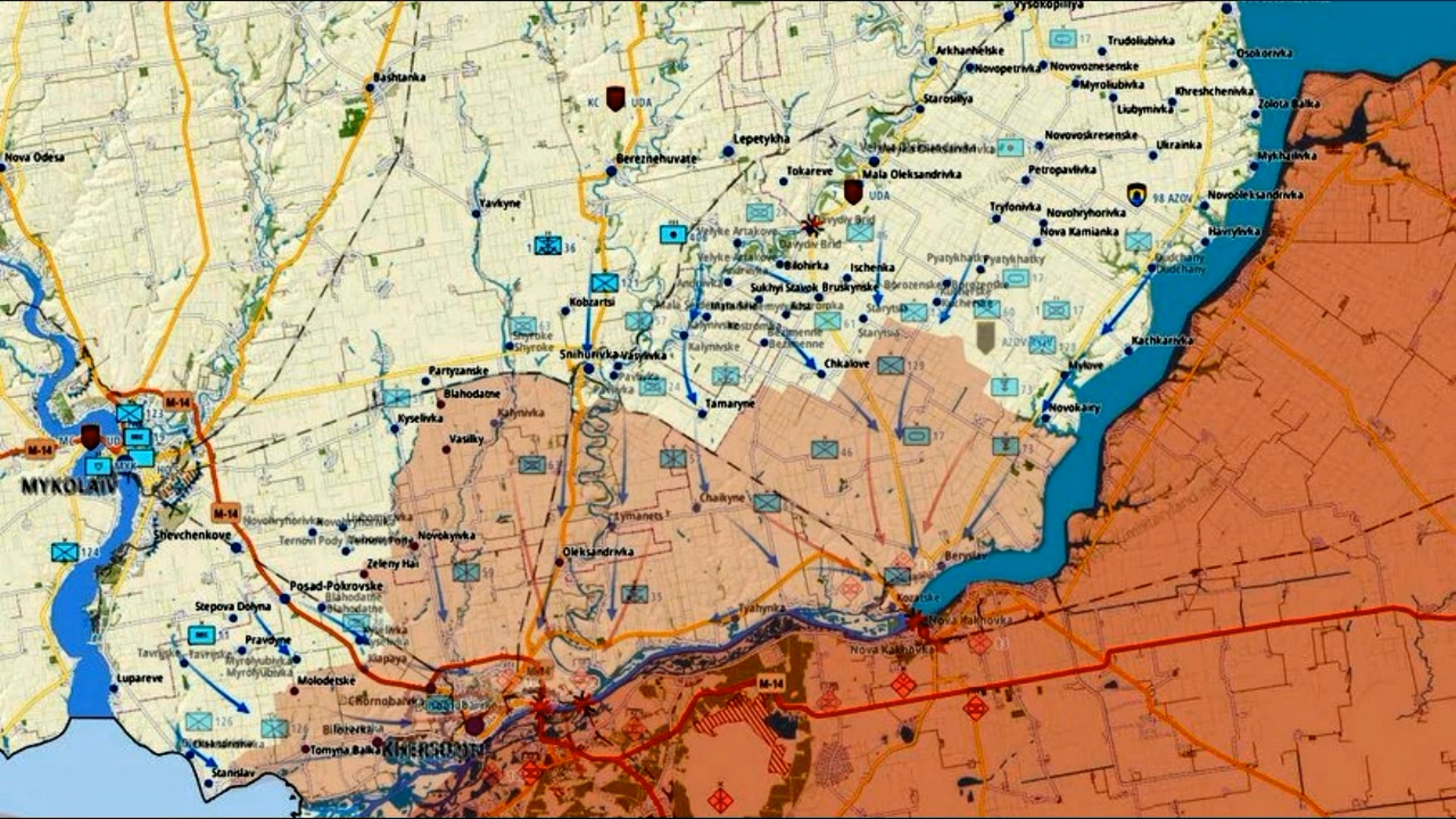 Карта боевых действий на Херсонском направлении с февраль 2022 по январь 2024 года