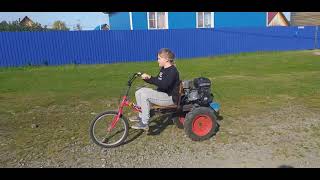 Ребята всем привет!!! Сделал что то типа МОТОБЛОК+ВЕЛОСИППЕД х НЕМНОГО ЖЕЛЕЗО= ПРИЯТНОГО ПРОСМОТРА