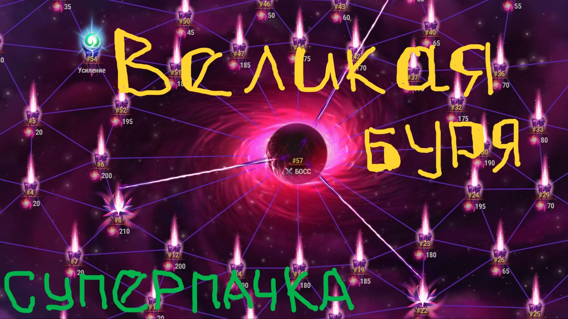 Пак которым можно пройти Великую бурю за меньшее число ходов и при наименьшем сопротивлении бури. Босс за 2 попытки при сопротивлении 150 едениц. Пак: Орион/Мара, Август/Альбус, Айзек/Оливка, Дориан/Мерлин, Небула/Каин. Общий пет Аксель.