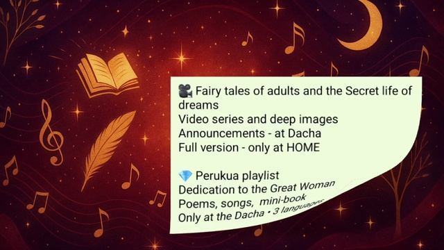 📖 Catalog Home and Garden Nadika Music. Word. Life. Look. Listen. Feel. --- 🏡 DACHA is an open territory of creativity 18 directions, 3 languages Here begins the acquaintance with Nadika 🎶 Author's songs and albums Russian • English • Deutsch Deep music for a living heart - 🎧 Words that sound like spells Affirmations to music Created with voice and soul 🎙 A voice that awakens strength Women's manifestos and affirmations In three languages 📚 Stories that heal Fairy tales, stories and revelations In the author's voice 🎥 Fairy tales of adults and the Secret life of dreams Video series and deep images Announcements - at Dacha Full version - only at HOME 💎 Perukua playlist Dedication to the Great Woman Poems, songs, mini-book Only at the Dacha • 3 languages 🗂 Voice acting portfolio My voice as an instrument Demo voice-over, dubbing, voice-over Listen professionally 🌠 First steps and victories Songs without music, stage, awards The story where it all began 🤝 Social and volunteer life Where there is no stage, but there is a heart Searching for people, serving society Only at the Dacha 📚 Telegram channel “Space” 🌏 Nadika's archive and library Songs, affirmations, announcements t.me/woman_i_queen 🏠 Nadika's House All creativity in full format Premium access to everything at once boosty.to/nadika_kazahstan ✨ Nadika's House and Dacha are waiting you Move, listen, stay YouTube 📺 Boosty 💰 Telegram 💬
