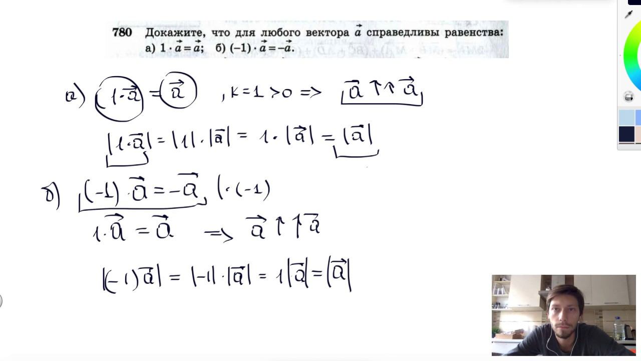 №780. Докажите, что для любого вектора а справедливы равенства: а) 1 • а = а ; б) (-1) • а = —а.