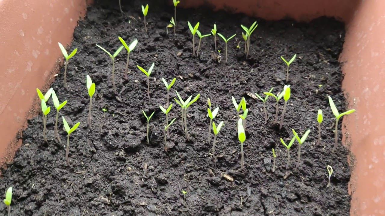 Всходы рассады помидор.