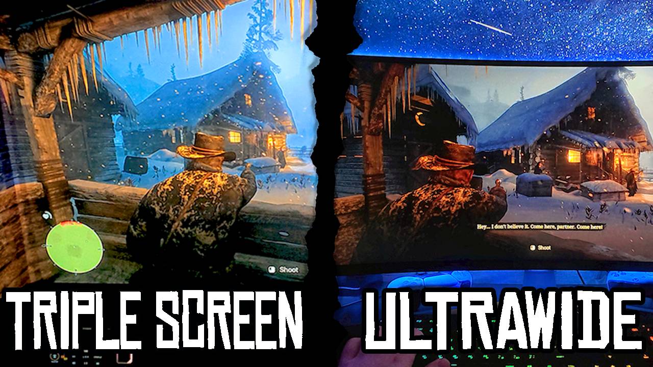 Эпичнее ли Red Dead Redemption 2 при игре на большом 49-дюймовом экране 32:9 vs 16:9 три монитора