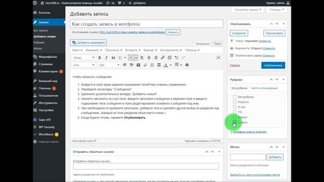 Как создать запись в wordpress