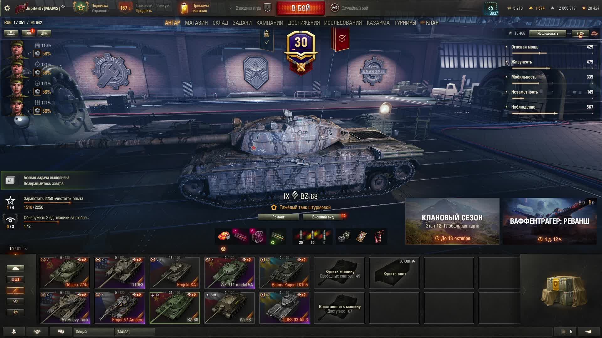 Мир танков. Соло. Взвод. Случайные бои. Натиск. Ваффентрагер