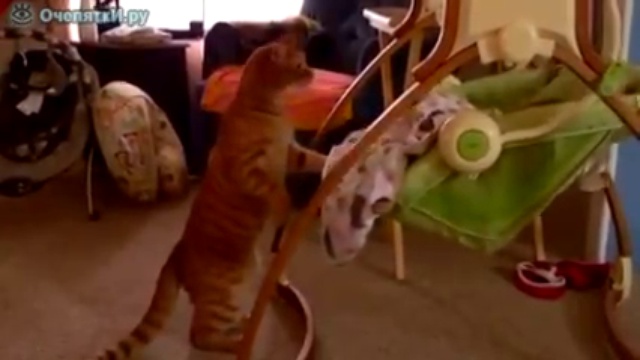 Кот баюкает малыша