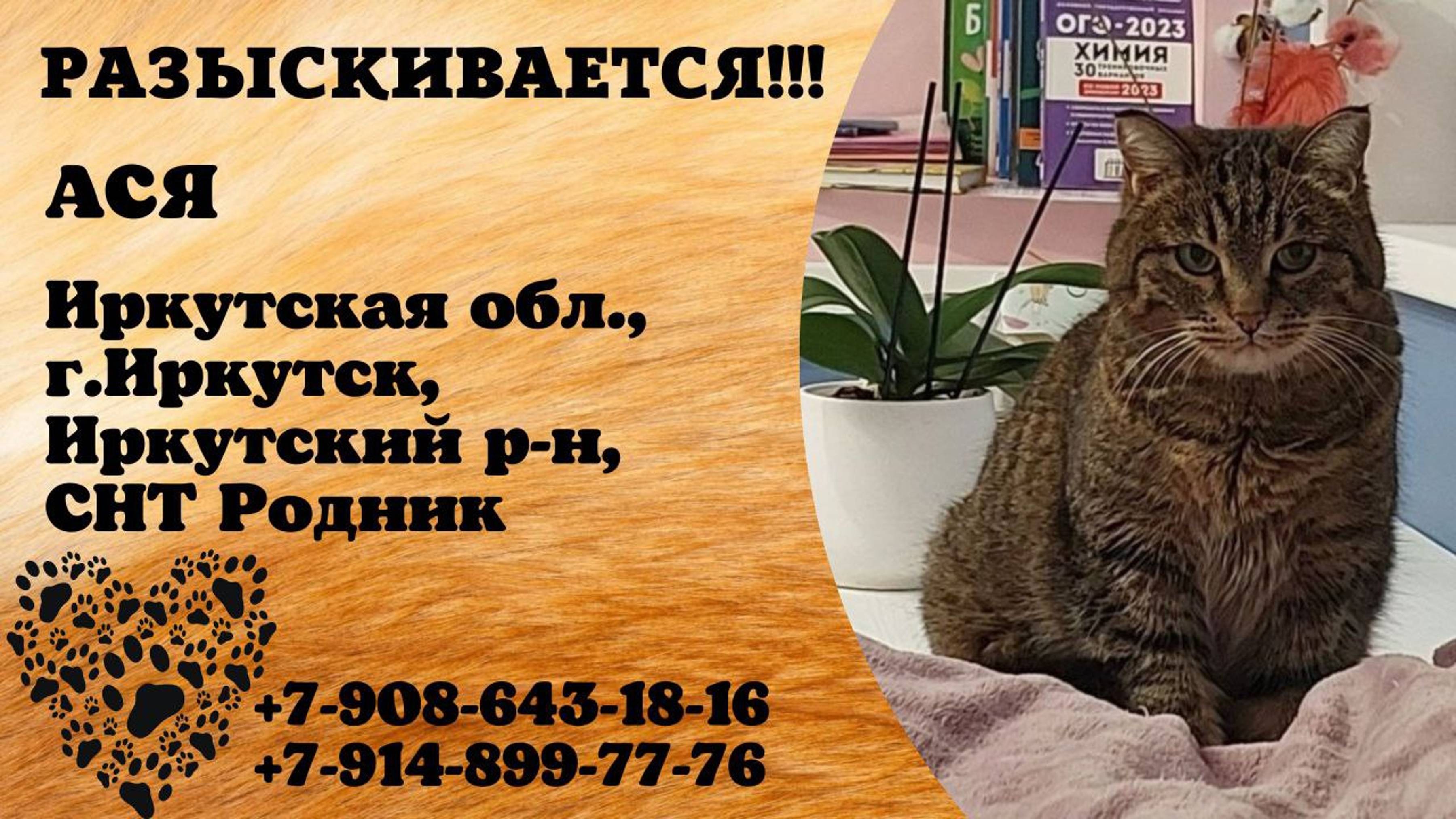 Пропала кошка! АСЯ. Иркутская обл, г.Иркутск