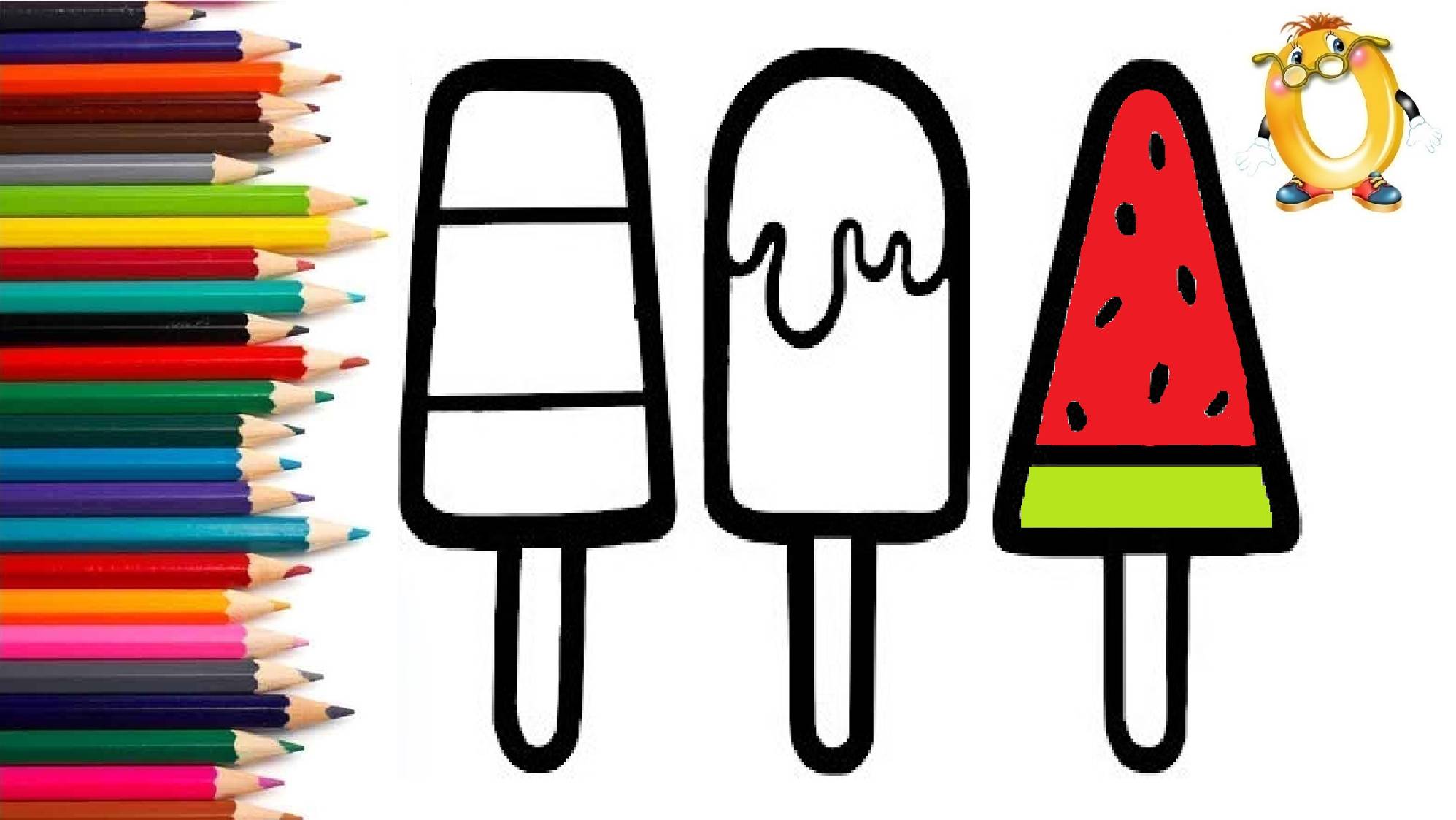Мультик - раскраска для детей МОРОЖЕНОЕ. Учимся как рисовать ЭСКИМО вместе с детьми.