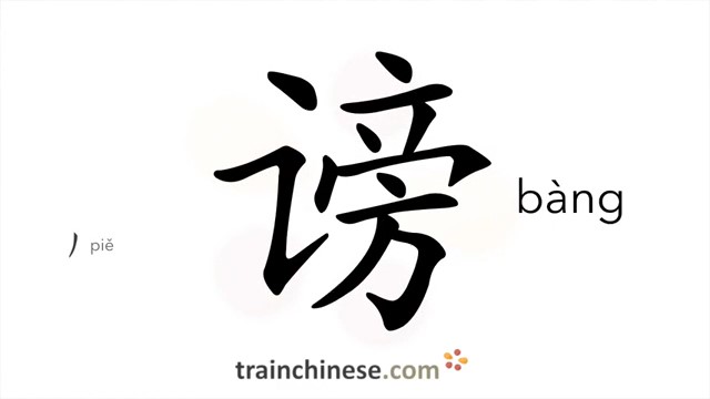 谤 (bàng) to slander; defame; speak ill of; libel; traduce; asperse; backbite; belie