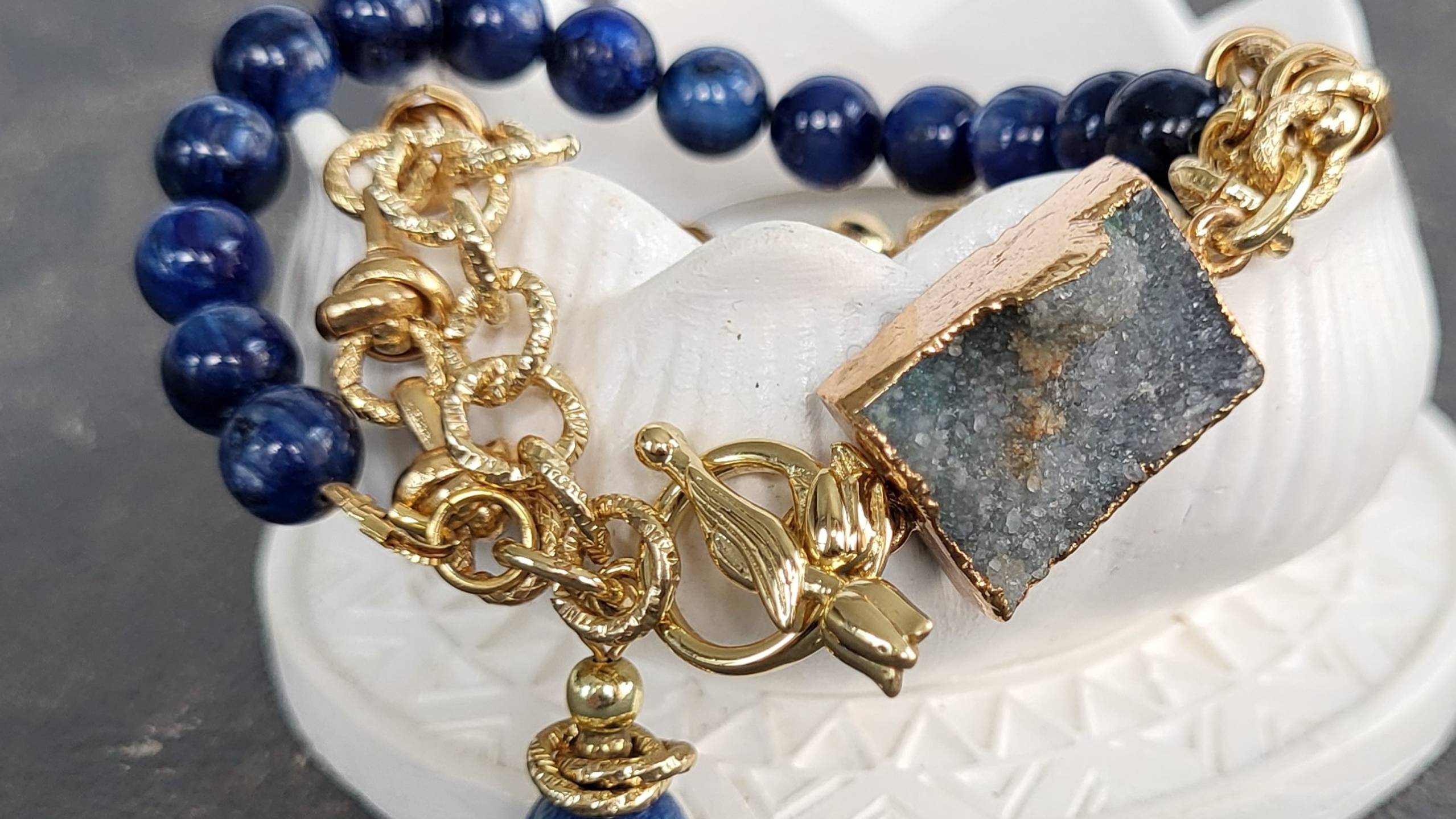 Браслет - цепочка из кианита с друзой агата