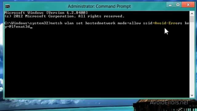 How to Turn Your Windows 8 Laptop into a Wireless Access Point Turn Your Windows 8 Laptop into a WiFi Hotspot http://www.avoiderrors.net/turn-your-windows-8-laptop-into-a-wireless-access-point IF IT DOESNT WORK Do the following while creating the adhoc network: Network Name = your natwork Name Security type = WPA2-Personal Security Key = your security Key
