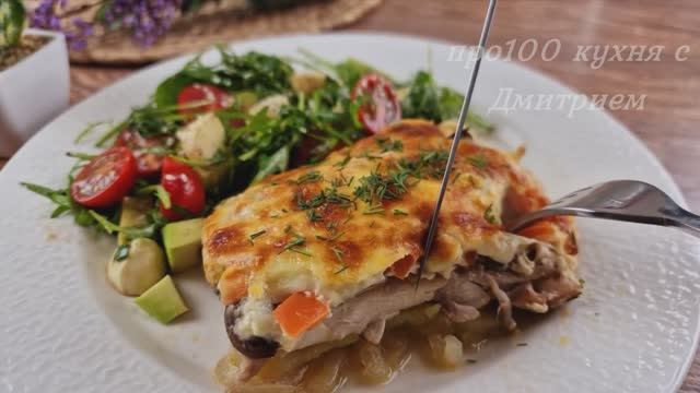 Приготовление и ингредиенты: Удалите кожу и кости с 7 куриных бедрышек. Добро пожаловать на наш канал! Разрезать на 2-3 части. Добавьте соль, черный перец и паприку. 4 столовые ложки растительного масла. Нарежьте 1 крупную луковицу. Смажьте противень растительным маслом. Сверху положить слой лука. Нарежьте 3 картофелины. соль, черный перец, 3 столовые ложки растительного масла. Положить картошку. Затем куриные бедра. 6 средних грибов. Добавьте соль. Накройте бумагой для выпечки и фольгой и запекайте при температуре 200 °C в течение 25 минут. 120 граммов сыра. 1 помидор. 1 яйцо, 2 столовые ложки майонеза. Добавьте начинку и запекайте еще 15 минут при 190°С. По 150 г рукколы и шпината. 7 помидоров черри. 90 грамм моцареллы. авокадо соль, черный перец, 3 столовые ложки растительного масла, 2 чайные ложки бальзамического уксуса, 1 чайная ложка горчицы. Посыпать кунжутом. Нарежьте укроп. Приятного аппетита!