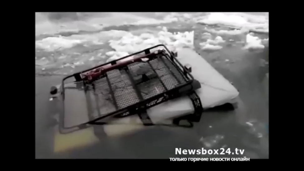 На реке Раздольная Приморского края автомобиль местных рыбаков ушел под воду, когда они рыбачили 18 февраля 2016 года.