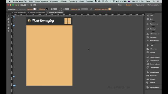 7. Создание шаблонной страницы для макета "Телефон" в Adobe Muse7. Создание шаблонной страницы для м