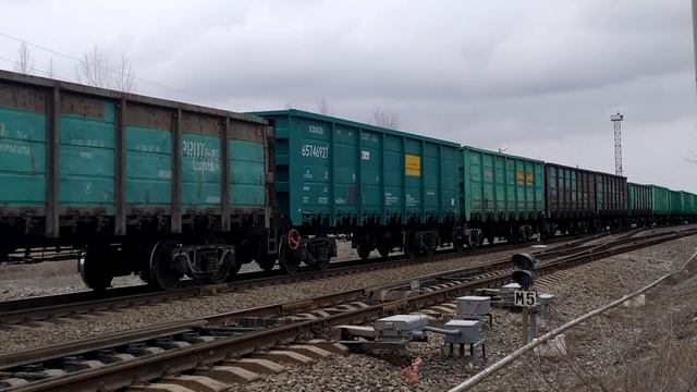 Лок.бригаде спасибо за приветствие! Грузовой мчится по 2гл.пути. СКЖД. 03•02•25г. 13:47.