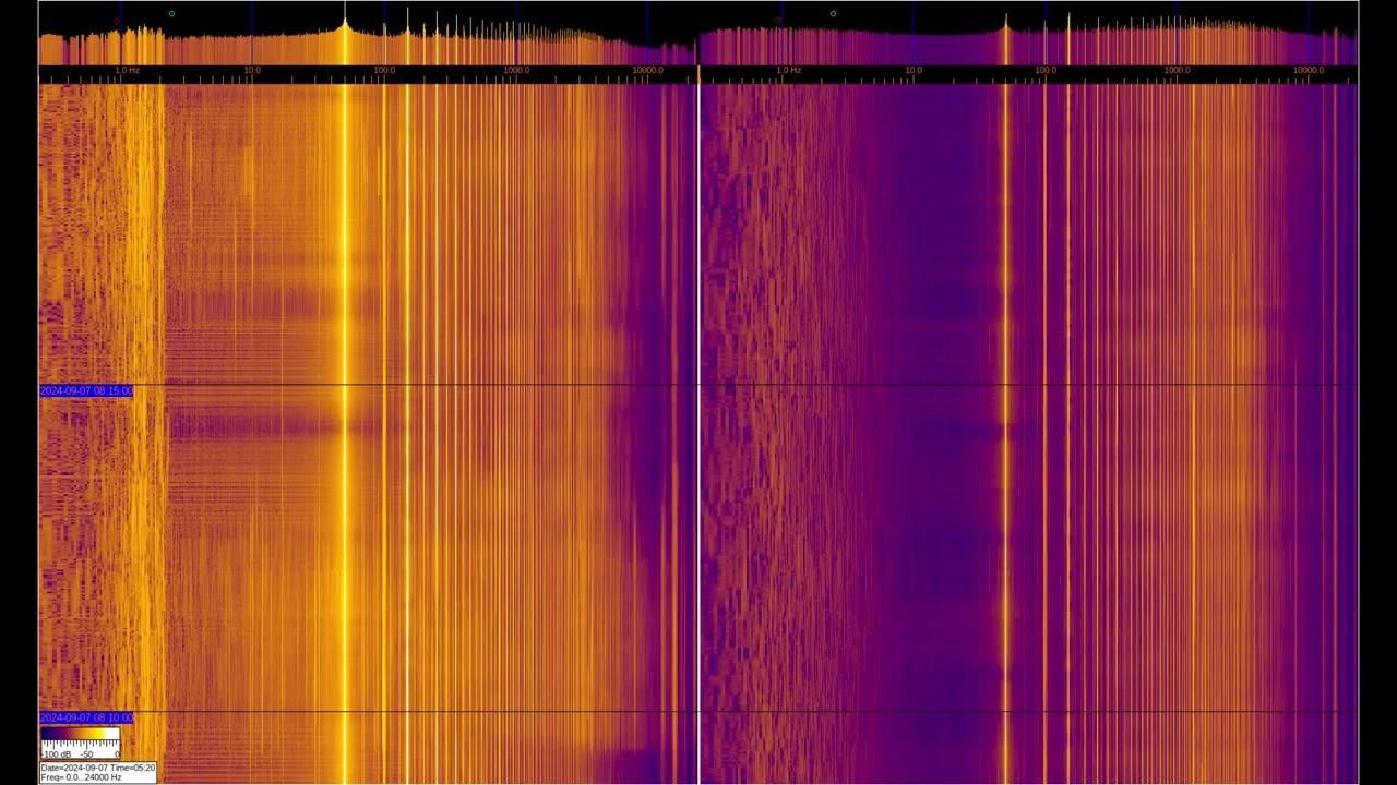 The left and right signals are taken from inductive sensors with ferromagnetic elements, but the left one is additionally connected to grounding on 2 stainless steel pins buried 1 m and spaced 1 m apart. You can see a large number of harmonics from the power supply and various artificial signals. Of interest are signals at frequencies below 50 Hz, where you can observe the operation of specialized equipment and communication signals of submarines and underground objects. Separately, it is worth considering signals in the region of 1-3 Hz on the left spectrum, which relate to the geomagnetic background, which is modulated by solar activity, They can be viewed in more detail in the video called “Signals from the Earth,” which are in the playlists below. The sound in the video is recorded in real time - a signal from sensors. О ПРОИСХОЖДЕНИИ ЧАСТОТНОЙ МОДУЛЯЦИИ СЕРПЕНТИННОЙ ЭМИССИИ https://youtu.be/bwWHggY1IVU?si=xAX1diRKI9MxQJ88&t=1740 Previous monitoring is in playlists: EMF monitor https://youtube.com/playlist?list=PLiRg2YCbXcwn41BHqADKVBep_TgVq6XUN Очень Низкая Частота ~ Very Low Frequency https://youtube.com/playlist?list=PLiRg2YCbXcwnp5DxM4PnSs7k_Rnypaqek SIGNALS IN THE GROUND https://youtube.com/playlist?list=PLiRg2YCbXcwl6f3Bf5arHbGSOCNE5U71O поддержать канал: 8-999-654-93-44