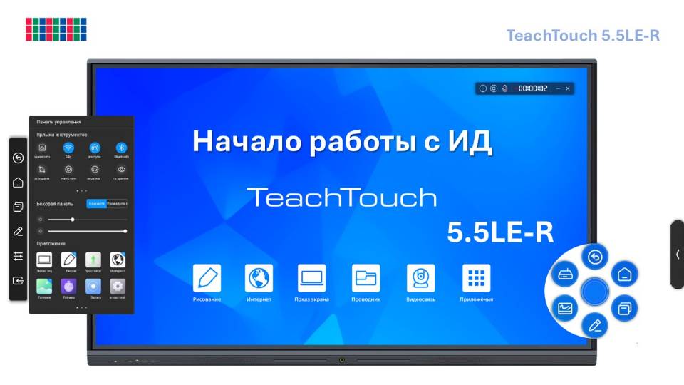 polymedia.ru В видео демонстрируется начало работы с интерактивным дисплеем TeachTouch 5.5LE-R. 00:04 Введение 00:26 Технические характеристики TeachTouch 5.5LE-R 00:48 Разъёмы и кнопки 02:07 Техническая поддержка и сервисное обслуживание 04:04 Начало работы с интерактивным дисплеем 04:19 Меню боковой панели инструментов 04:53 Колесо инструментов 05:09 Иконки для быстрого старта приложений: настройка количества и порядка иконок 06:30 Пометки поверх экрана 09:55 Дополнительные инструменты боковой панели инструментов - обзор 10:24 Источник сигнала 10:31 Блокнот для заметок (маленькая доска) 12:04 Снимок экрана 13:10 Выключить питание 13:17 Перезагрузка 13:24 Защита зрения 13:30 Сенсорная чувствительность 13:38 ЭКО 13:41 Сенсорная блокировка (для разблокирования экрана используйте пульт дистанционного управления и нажмите ""++"" и ""--"" кнопкой-качелькой Vol (Звук) 14:11 Блокировка экрана 14:20 Слушать в одно ухо (Выключить экрана) 14:25 Отключить экран 14:31 Отключить OPS 14:40 Заморозка 15:10 Пролистать экраны 15:22 Без звука (отключить звук) 15:30 Фокусная лампа 16:10 Занавес (шторка) 16:58 Установить блокировку на использование приложениями 18:13 Настройка домашнего экрана 18:59 Окно презентации 19:40 Настройка дополнительных экранов 20:19 Работа с отдельным окном для передачи файлов "Интерактивное окно" 24:46 Переключение OPS ↔︎ Android ▶Каталог TeachTouch: https://www.polymedia.ru/oborudovanie/?search=teachtouch ▶Техническая поддержка пользователей TeachTouch: https://www.polymedia.ru/service/new.php