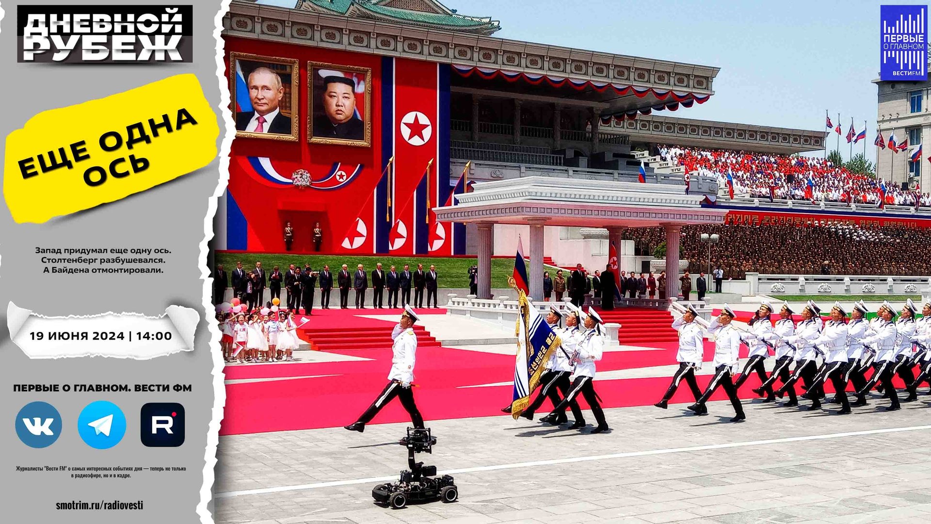 #дневнойрубеж #первыеоглавном #сво #донбасс #спецоперация #украина #путин #ким #кимченын #севернаякорея #пхеньян #кндр #корея #байден #сша #оон Запад придумал еще одну ось. Столтенберг разбушевался. А Байдена отмонтировали. 🔔Подписывайтесь на Telegram канал - Первые о главном: https://t.me/vestifmfirst 🔔Подписывайтесь на Rutube канал - Первые о главном: https://rutube.ru/channel/24115140/ 🔔Подписывайтесь на VK канал - Первые о главном: https://vk.com/first.vestifm 🔔Подписывайтесь на ДЗЕН канал - Первые о главном: https://zen.yandex.ru/id/5fc4960a799d1b24b5be5189 🔔Подписывайтесь на Telegram канал - ВестиFM+: https://t.me/s/vestifmplus СМОТРИТЕ НАС НА ПЛОЩАДКЕ СМОТРИМ: https://smotrim.ru/channel/365
