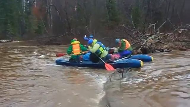 Катамаран перелезает через бревно