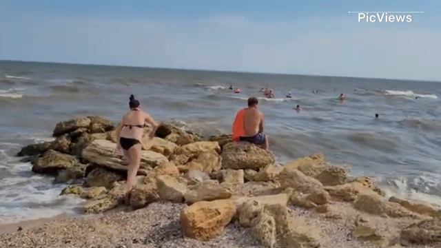 Голубицкая Азовское море сегодня 10 июля 2024. Обстановка на пляже море и погода сейчас
