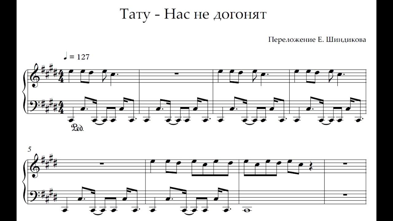 Ноты Тату - Нас не догонят (Not Gonna Get Us)