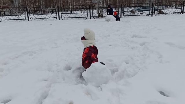 Слепили снеговика и заодно исполнили один пункт из списка маминых желаний