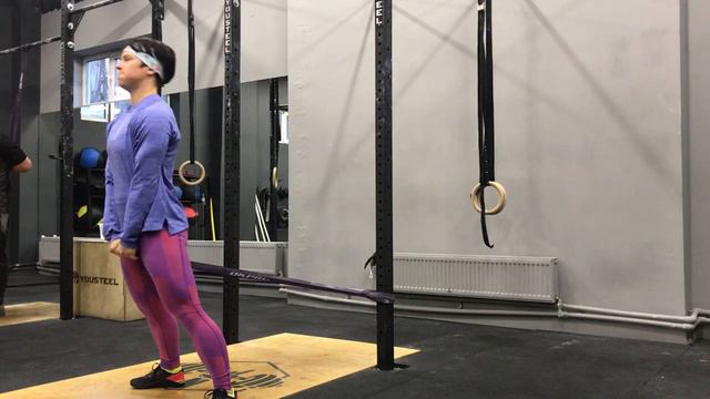 Разгибание бедер с резиной стоя